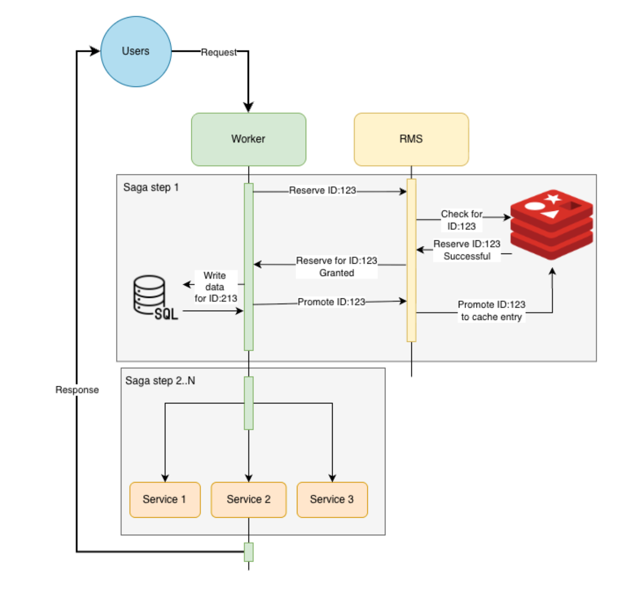 - Handling a failed SQL write: if this INSERT fails, the saga has failed. The worker must notify the RMS to release the lock.